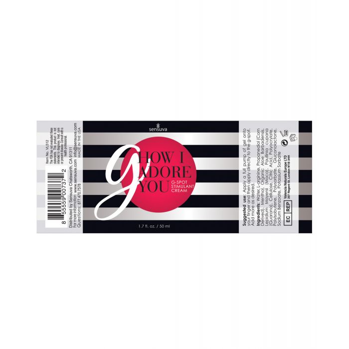 Sensuva’s G How I Adore You, all-natural enhancement gel, helps women find it and enjoy more g-spot orgasms! Massage it directly onto the g-spot to increase blood flow and sensitivity. With more stimulation, the g-spot area may become more pronounced and accessible during manual play or penetration giving women more pleasure and possibly triggering a g-spot orgasm.