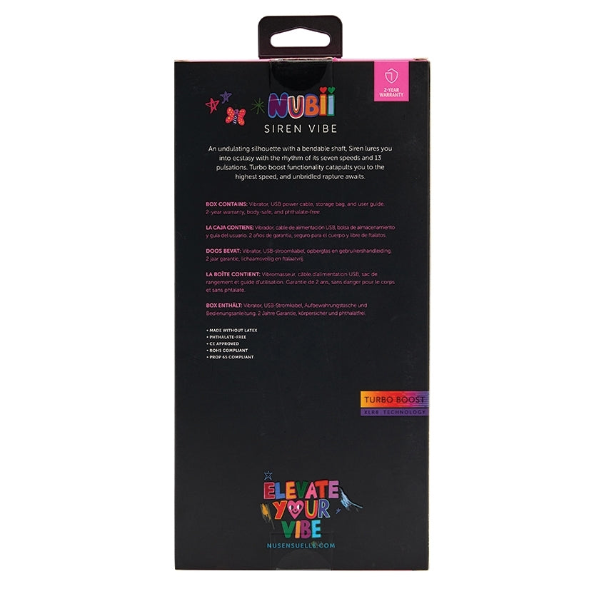 Dive into mouthwatering G-spot stimulation with this bendable vibe. With inclusivity and diversity at the forefront of the design process, we developed Siren with an undulating silhouette and the ability to bend, allowing you to tailor the vibe to your preferences. With seven luscious speeds and 13 titillating pulsations, Siren targets delicious G-spot stimulation. The toy’s expansive vibrations can also arouse the clitoris and other sensory spots. Simply double-click the - button to engage the turbo boost functionality, and elevate your experience by catapulting the speed to the highest setting. Like its name-sake, Siren indeed lures you into ecstasy and unbridled rapture.